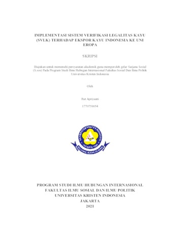 Apriyanti, Rut (2021) Implementasi Sistem Verifikasi Legalitas Kayu (SVLK) Terhadap Ekspor Kayu Indonesia ke Uni Eropa. S1 thesis, Universitas Kristen Indonesia.