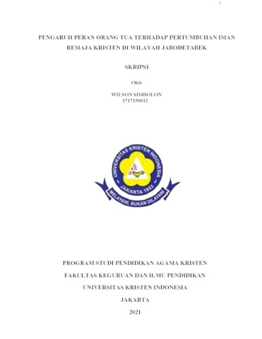 Simbolon, Wilson (2021) Pengaruh Peran Orang Tua terhadap Pertumbuhan Iman Remaja Kristen di Wilayah Jabodetabek. S1 thesis, Universitas Kristen Indonesia.