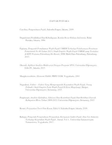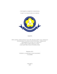 Kleden, Petrus Laurensius Wolo (2019) Pengaruh Sosialisasi Yang Dilakukan KPP atau Tingkat Pemahaman Wajib Pajak Potensial Terhadap Penerimaan Tax Amnesty Tahun 2016 Sampai Dengan 2017 Pada KPP Pondok Gede. S1 thesis, Universitas Kristen Indonesia.