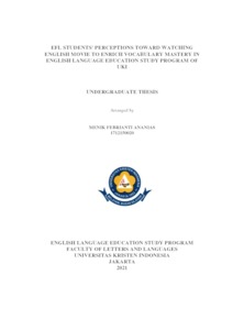 Ananias, Menik Febrianti (2021) EFL Students' Perceptions Toward Watching English Movie To Enrich Vocabulary Mastery In English Language Education Study Program Of UKI. S1 thesis, Universitas Kristen Indonesia.
