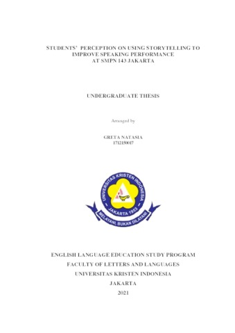 Natasia, Greta (2021) Students' Perception on Using Storytelling to Improve Speaking Performance at SMPN 143 Jakarta. S1 thesis, Universitas Kristen Indonesia.