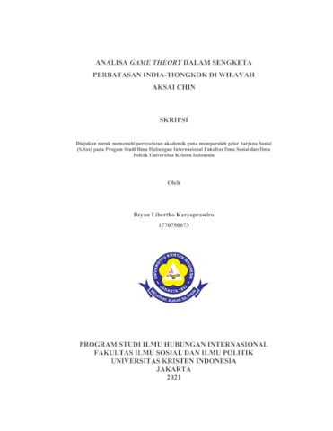 Karyoprawiro, Bryan Libertho (2021) Analisa Game Theory dalam Sengketa Perbatasan India-Tiongkok di Wilayah Aksai Chin. S1 thesis, Universitas Kristen Indonesia.