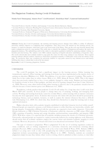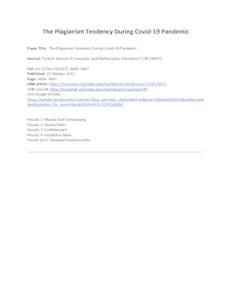 Simatupang, Masda Surti and Peter, Ramot and Murniarti, Erni and Male, Hendrikus and Tambunsaribu, Gunawan (2021) The Plagiarism Tendency During Covid-19 Pandemic. Turkish Journal of Computer and Mathematics Education, 12 (14). pp. 4600-4607. ISSN 1309 4653