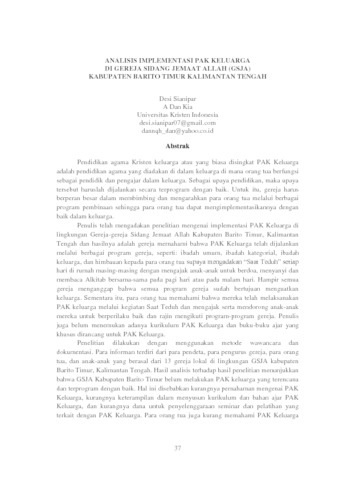 Sianipar, Desi and Kia, Armandho (2018) Analisis Implementasi PAK Keluarga di Gereja Sidang Jemaat Allah (GSJA) Kabupaten Barito Timur Kalimantan Tengah. Jurnal Shanan, 2 (2). pp. 37-67. ISSN 2722 4678