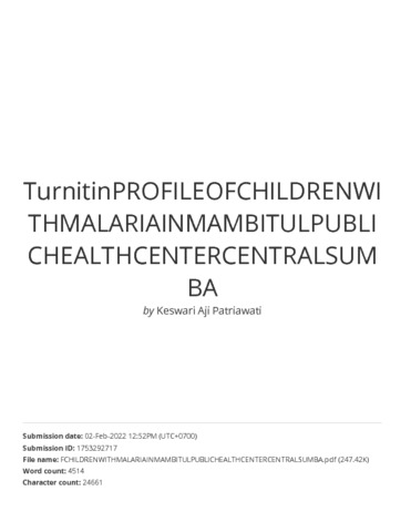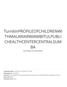 TurnitinPROFILEOFCHILDRENWITHMALARIAINMAMBITULPUBLICHEALTHCENTERCENTRALSUMBA.pdf Download (1MB) | Preview |
