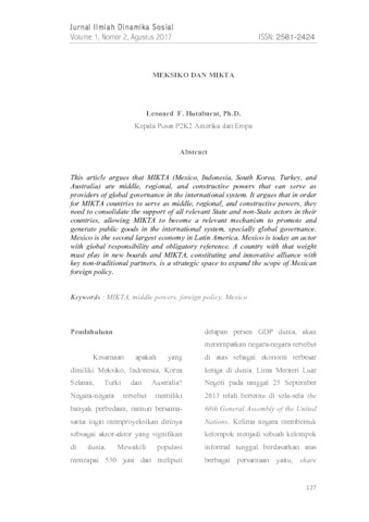 Hutabarat, Leonard F. (2017) Mesiko dan Mikta. Jurnal Ilmiah Dinamika Sosial, 1 (2). pp. 127-140. ISSN 2581 2424