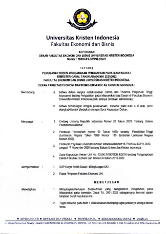 UKI, UKI (2021) Penugasan Dosen Mengadakan Pengabdian kepada Masyarakat Semester Gasal TA. 2021-2022 Fakultas Ekonomi dan Bisnis Universitas Kristen Indonesia. Fakultas Ekonomi dan Bisnis Universitas Kristen Indonesia. (Unpublished)