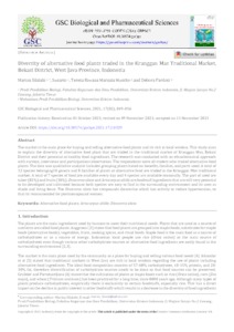 Silalahi, Marina and Sunarto, Sunarto and Munthe, Teresa Riwana Marnala and Pardosi, Debora (2021) Diversity of alternative food plants traded in the Kranggan Mas Traditional Market, Bekasi District, West Java Province, Indonesia. GSC Biological and Pharmaceutical Sciences, 17 (2). pp. 49-56. ISSN 2581 3250