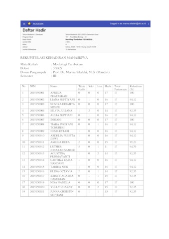 Silalahi, Marina (2022) Mata Kuliah : Morfologi Tumbuhan Kelas A. UKI, Jakarta. (Unpublished)