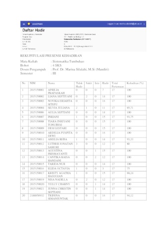 Silalahi, Marina (2022) Mata Kuliah : Sistematika Tumbuhan. UKI, Jakarta. (Unpublished)