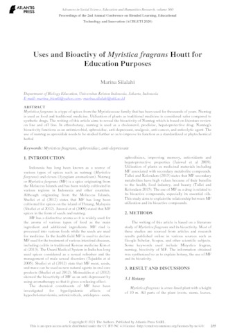 Silalahi, Marina (2021) Uses and Bioactivy of Myristica fragrans Houtt for Education Purposes. Proceedings of the 2nd Annual Conference on blended learning, educational technology and Innovation (ACBLETI 2020). pp. 225-259. ISSN 2352 5398