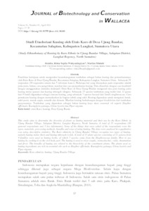 Demita, Demita and Wahyuningtyas, Riska Septia and Silalahi, Marina (2021) Studi Etnobotani Kuning oleh Etnis Karo di Desa Ujung Bandar, Kecamatan Salapian, Kabupaten Langkat, Sumatera Utara (Study Ethnobotany of Kuning by Karo Ethnic in Ujung Bandar Village, Salapian District, Langkat Regency, North Sumatra). JOURNAL of Biotechnology and Conservation in WALLACEA, 1 (1). pp. 17-30. ISSN 2808 4268
