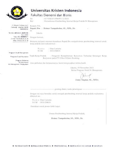 Tampubolon, Hotner (2022) Pembimbing Internal Kerja Praktik S1 Manajemen. UKI.
