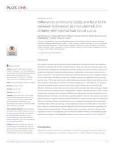 Surono, Ingrid S. and Jalal, Fasli and Bahri, Syukrini and Romulo, Andreas and Kusumo, Pratiwi Dyah and Manalu, Erida and Yusnita, Yusnita and Venema, Koen (2021) Differences in immune status and fecal SCFA between Indonesian stunted children and children with normal nutritional status. Plos One.