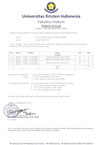 Siregar, Rospita Adelina (2022) Mata Kuliah : Hukum Perjanjian. UKI. (Unpublished)
