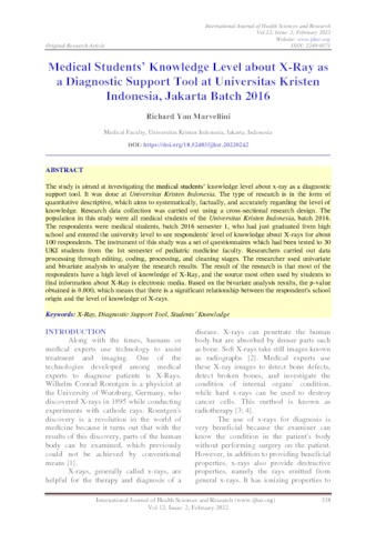 The study is aimed at investigating the medical students’ knowledge level about x-ray as a diagnostic support tool. It was done at Universitas Kristen Indonesia. The type of research is in the form of quantitative descriptive, which aims to systematically, factually, and accurately regarding the level of knowledge. Research data collection was carried out using a cross-sectional research design. The population in this study were all medical students of the Universitas Kristen Indonesia, batch 2016. The respondents were medical students, batch 2016 semester 1, who had just graduated from high school and entered the university level to see respondents' level of knowledge about X-rays for about 100 respondents. The instrument of this study was a set of questionnaires which had been tested to 30 UKI students from the 1st semester of pediatric medicine faculty. Researchers carried out data processing through editing, coding, processing, and cleaning stages. The researcher used univariate and bivariate analysis to analyze the research results. The result of the research is that most of the respondents have a high level of knowledge of X-Ray, and the source most often used by students to find information about X-Ray is electronic media. Based on the bivariate analysis results, the p-value obtained is 0.000, which means that there is a significant relationship between the respondent's school origin and the level of knowledge of X-rays. Keywords: X-Ray, Diagnostic Support Tool, Students’ Knowledge