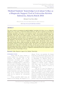 Marvellini, Richard Yan (2022) Medical Students’ Knowledge Level about X-Ray as a Diagnostic Support Tool at Universitas Kristen Indonesia, Jakarta Batch 2016. International Journal of Health Sciences and Research, 12 (2). pp. 318-328. ISSN 2249 9571