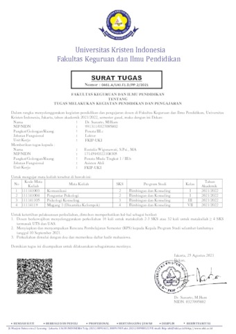 FKIP, UKI (2022) Surat Tugas tentang melakukan kegitana pendidikan dan pengajaran. UKI.