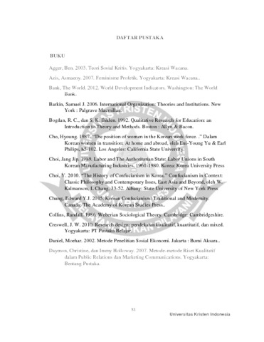 Atara, Valentine Pebrina Friscila (2021) Peran OECD Dalam Mempromosikan Kesetaraan Upah Berbasis Gender di Korea Selatan. S1 thesis, Universitas Kristen Indonesia.