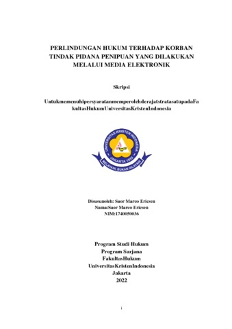 Ericsen, Saor Marco (2022) Perlindungan Hukum Terhadap Korban Tindak Pidana Penipuan Yang Dilakukan Melalui Media Elektronik. S1 thesis, Universitas Kristen Indonesia.