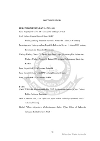 Perlindungan yang diberikan oleh Undang-Undang Republik IndonesiaNomor 19 Tahun 2016 tentang Informasi dan Transaksi Elektronik berupa penyelesaian perkara dan pemberian sanksi pidana yang diberikan kepada tersangka atau terdakwa. Pasal 28 ayat (1) Undang-UndangRepublik Indonesia Nomor 19 Tahun 2016 tentang Informasi dan Transaksi Elektronikdapat indikasikan sebagai pasal yang mengatur mengenai penipuan, akan tetapi jika dikaji lebih dalam lagi, unsur-unsur yang terdapat pada pasal 28 ayat (1) Undang-UndangRepublik Indonesia Nomor 19 Tahun 2016 tentang Informasi dan Transaksi Elektronik ini masihdirasa kurang untuk memenuhi unsur-unsur yang terdapat di dalam perbuatan yang memberikan informasi fiktif dalam hal penjualan barang di dunia maya. Lain halnya dengan Pasal 378 KUHP, yang rinci mengurai unsur-unsur perbuatan yang memberikan informasi fiktif./ The Internet isused as a means to commit a crime, one of which is fraud. The protection granted by the Law ofthe Republic of Indonesia Number 19 the Year 2016 on Information and Electronic Transactionsin the form of settlement of cases and the provision of criminal sanctions provided to the suspector defendant. Article 28 paragraph of the Law of the Republic of Indonesia Number 19 theYear 2016 on Information and Electronic Transactions may indicate as the article regulatingfraud, but if examined more deeply, the elements contained in Article 28 paragraph Law –TheRepublic of Indonesia No. 19 of 2016 on Information and Electronic Transactions is stillconsidered less to meet the elements contained in the act that provides fictitious information interms of sales of goods in cyberspace. Another case with Article 378 of the Criminal Code, whichdetailed parse elements of acts that provide fictitious information