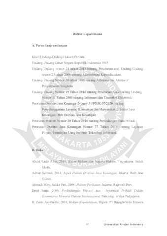 Panjaitan, Sanjay Cluivert Adrianus (2022) Perlindungan Hukum Informasi Data Pribadi Dalam Kegiatan Pinjaman Online Bagi Masyarakat. S1 thesis, Universitas Kristen Indonesia.