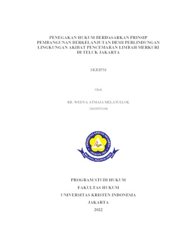 Elok, Raden Roro Wedya Atmaja Melati (2022) Penegakan Hukum Berdasarkan Prinsip Pembangunan Berkelanjutan Demi Perlindungan Lingkungan Akibat Pencemaran Limbah Merkuri di Teluk Jakarta. S1 thesis, Universitas Kristen Indonesia.