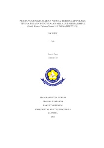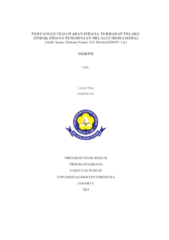 Pane, Lestari (2022) Pertanggungjawaban Pidana Terhadap Pelaku Tindak Pidana Penghinaan Melalui Media Sosial (Studi Kasus: Putusan Nomor 315/Pid.Sus/2020/PN Cjr). S1 thesis, Universitas Kristen Indonesia.